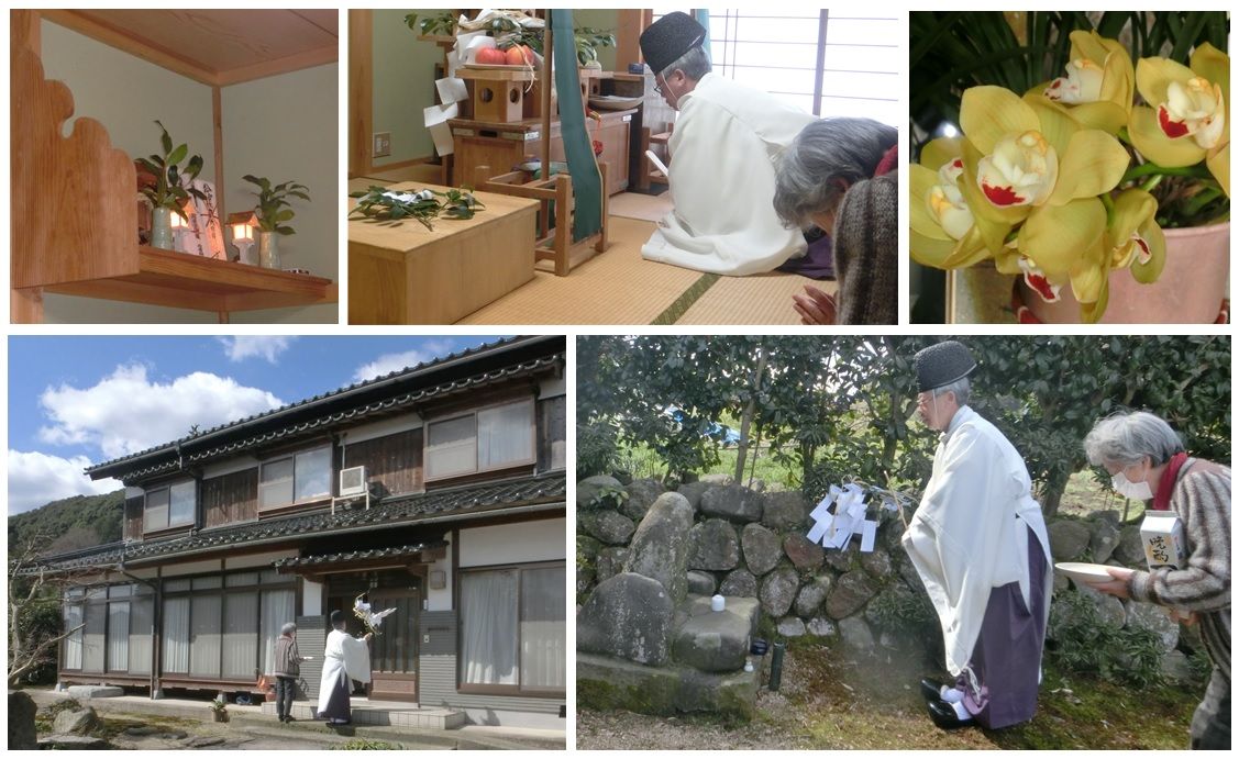 2016年03月19日 宅神祭 ◆◆ 宅神祭 ◆◆✻宅神祭(たくじんさい)清祓祈願の神事を奉仕させていただきました。✻毎年1回宅神祭を斎行しています。✻家屋や敷地をお守りいただいている神さまに感謝し、引き続き恩恵を授かるように 祈願させていただきました。✻玄関や敷地の四隅、敷地内に祀られておられる地主さんを大麻や酒、塩で清め祓い しました。✻玄関には奥様が育てられた蘭が見事に花をつけていました。 「社務日誌」カテゴリの最新記事 < 前の記事次の記事 >