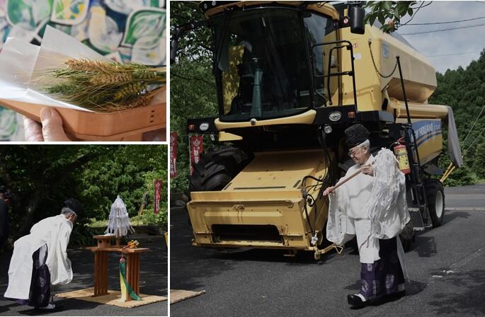2025年06月25日 麦の収穫 ◆◆ 麦の収穫 ◆◆ ✻“大山こむぎの”の収穫にあたって、安全祈願祭を斎行させていた ✻だきました。✻ ✻昨年の10月に麦を蒔き11月には青い小さな麦が発芽しました。 ✻猪の侵入予防に電気の柵を麦畑に巡らすなどして、やっと今日 ✻“大山こむぎ”の収穫に至りました。 ✻実り多き日を迎えられたことを神様に感謝し、収穫作業が始まり ✻ました。 ✻ニューホーランドのコンバインが大山山麓の麦を刈続けます。 「社務日誌」カテゴリの最新記事 < 前の記事次の記事 >