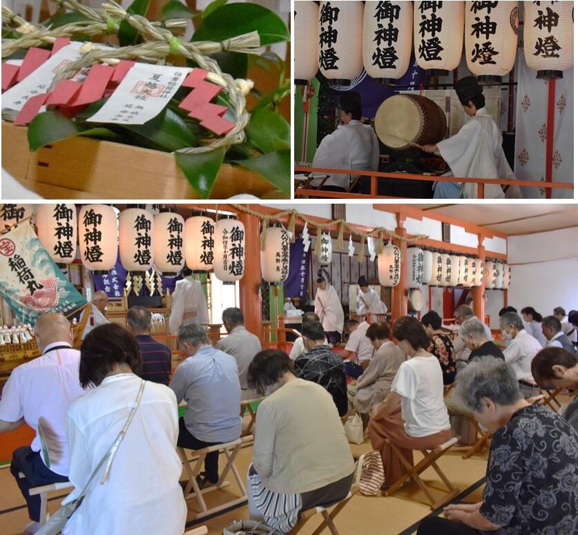 2025年07月28日 夏越大祓 ◆◆ 夏越大祓 ◆◆ ✻夏越大祓(なごしのおおばらい)は半年の間に罪や穢れが心身や家 ✻屋敷に積もってしまった罪穢(つみけがれ)を祓い清める神事です。 ✻誰もが知らず知らずのうちに人を傷つけたり、罪や過ちを犯して ✻いると言われています。✻ ✻宮司を先頭に茅の輪を左まわり、右まわり、左まわりと八の字に三 ✻回くぐって穢れを祓いました。 ✻夏越の大祓を受けると“千歳の命を延ぶ”と言われています。 ✻無病息災、延命長寿、悪疫退散のご利益があります。 ✻茅の輪くぐりは31日までお参りできます。 「社務日誌」カテゴリの最新記事 < 前の記事次の記事 >