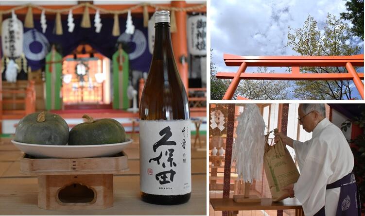 ご近所の農家さんが南瓜と新米を奉納されました。