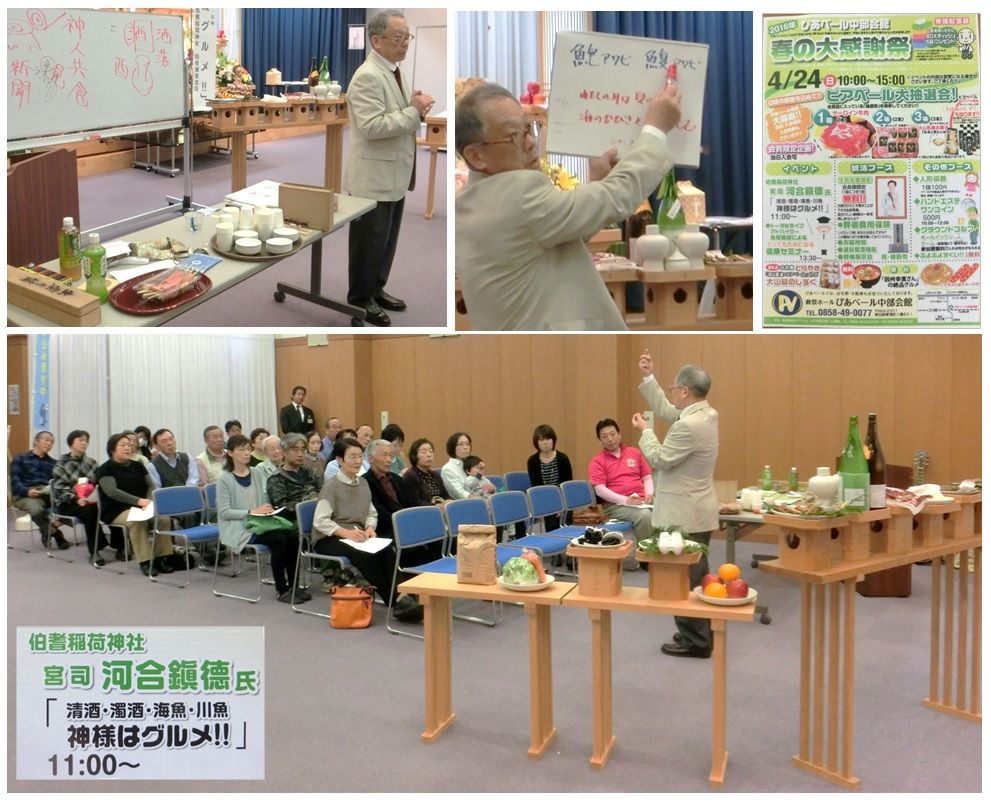 2016年04月28日 神様はグルメ ◆◆ 神様はグルメ ◆◆✻中部ピアベール・春の大感謝祭の一コマで講演をしました。✻テーマは「神様はグルメ」です。✻神宮からいただいた撤饌も総動員させて神饌について説明させていただきました。 「社務日誌」カテゴリの最新記事 < 前の記事次の記事 >